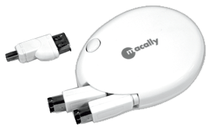 Ein ausziehbares Firewire-Kabel ist ideal für alle Reisende mit PowerBook. Man kann es bequem in der Westentasche mitnehmen und hat damit immer das passende Kabel für den Anschluss eines Firewire-PocketDrives dabei. (für MacOS 9/MacOS X) |